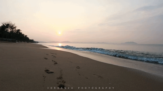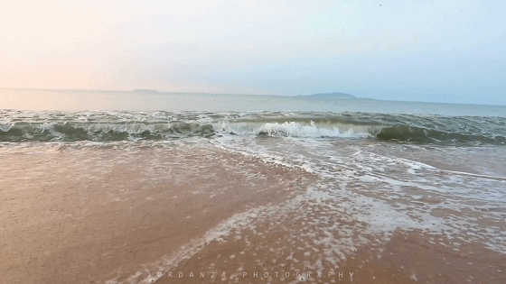 这才是浪……起得早就是好,整个沙滩都是你的……哈哈哈哈!对面的小岛也是你的。