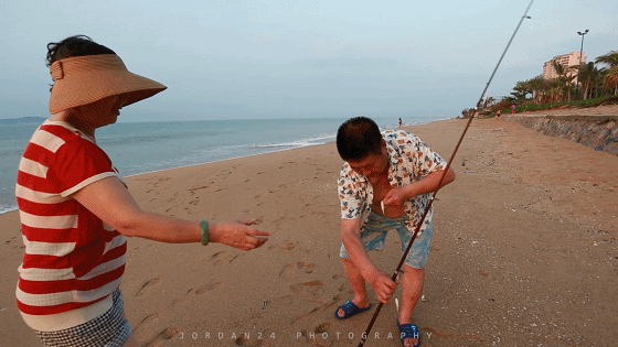 三亚真的有很多东北人,不一会儿就遇到一对夫妇用爆炸钩海钓