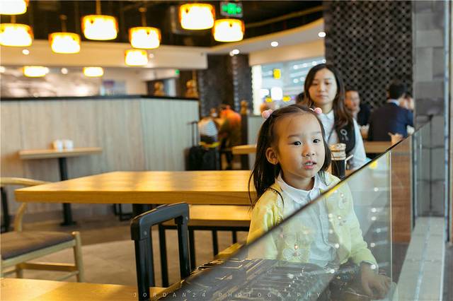 在候机楼等,不过有小孩在身边,叽叽喳喳时间也是过得相当快。