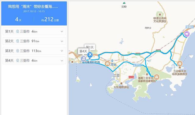 到“亚龙湾”,再到“椰梦长廊”,最后返回酒店