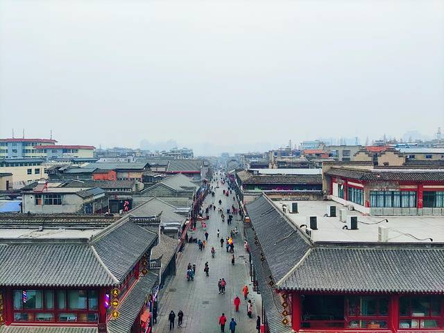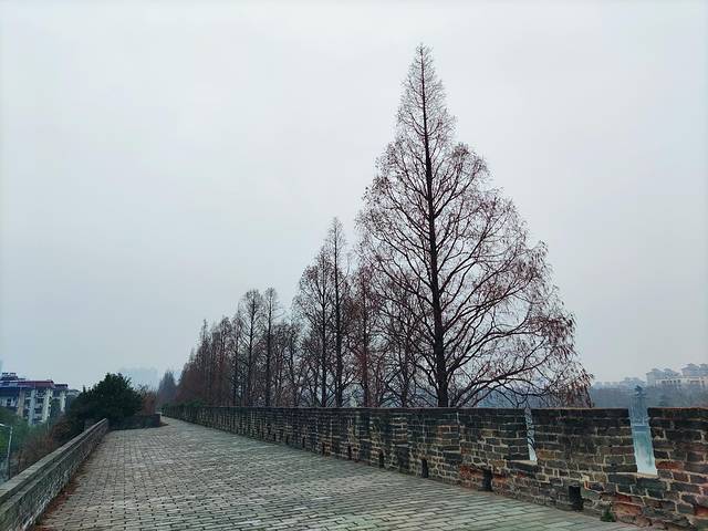 虽然一大片都是古城,但古城的身影着实淡了,城墙楼阁,飘散四处。爬上巍峨的城墙,周边草木秃秃的,天又阴沉,“秋风萧瑟天气凉”。