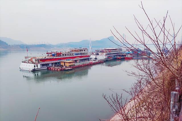 酒足饭饱之余,出门左拐便是长江,沿着漫漫江水散步,倒也惬意。彼时天阴,正值冬季,有几分萧瑟。