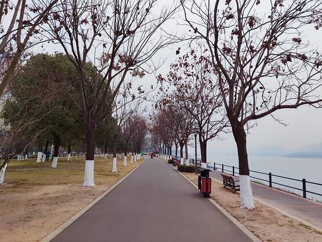 除了必不可少的人行道,还有自行车道,这为欣赏江景增了一种模式——顺着长江骑自行车,沿途也有很多共享单车,蛮方便的。