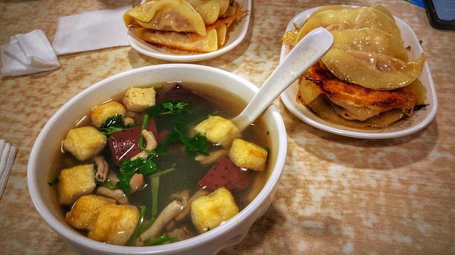 董记锅贴,鸭血粉丝汤,月葉紅茶,蟹黄饭。。。