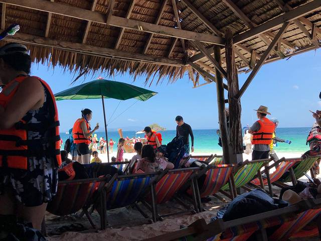 第二天元气恢复后就要出海了,选择了最适合亲子的蛋岛半日游。即便如此,半天的行程还是很耗费体力的,而且因为酒店的位置相对较偏,离码头距离远,早晨接车的时间和下午送回的时间都是最早和最晚的,下午回到酒店都接近4点钟了,晚上只是在酒店海滩附近的路边烧烤和超市解决了晚餐。
