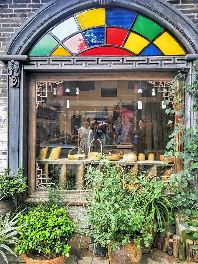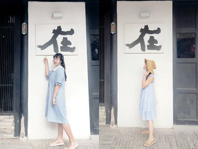 在古镇上走走停停,看到好看的店铺都会停下来拍照。