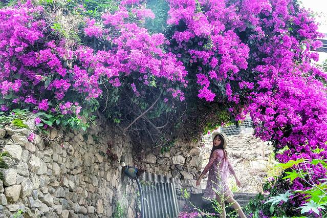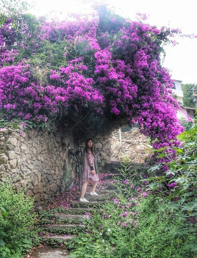 这株三角梅,也是别人院子的,不过在外面所以我们停好车就冲上去了!