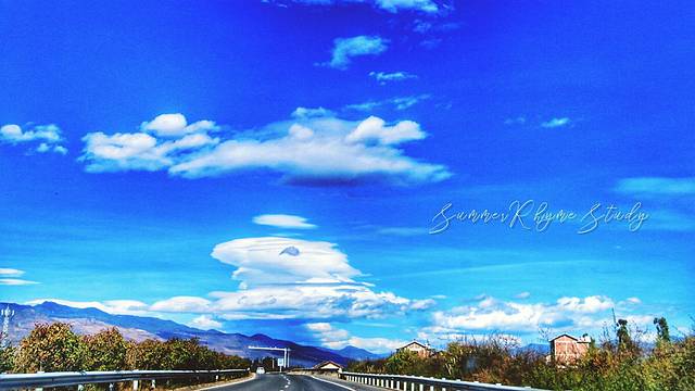快要到丽江的时候看见天上的云好好看呀。有点像蘑菇。。。