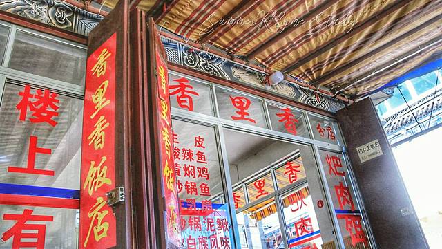放下行李准备出去找点吃的,路边一家小卖部的小美女告诉我们路口的这家【香里香】饭店的味道还不错,而且价格也比较公道。