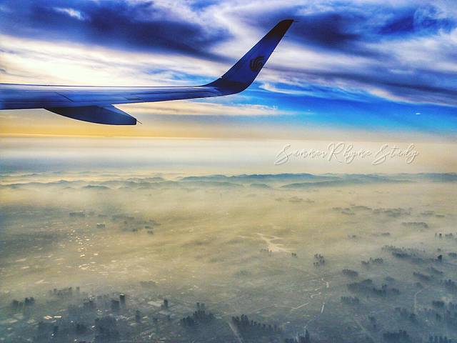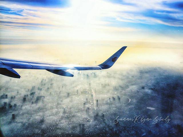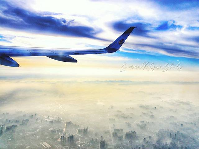 结果一到天上,低头一看哇塞!浓雾下的成都有种【海市蜃楼】的既视感,突然觉得等了这么久还是挺值得的。。。。。。