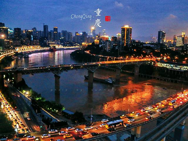先大致逛了一圈后还是回到上面,去了千厮门大桥上,据说这里是俯瞰洪崖洞全景的好地方。。。