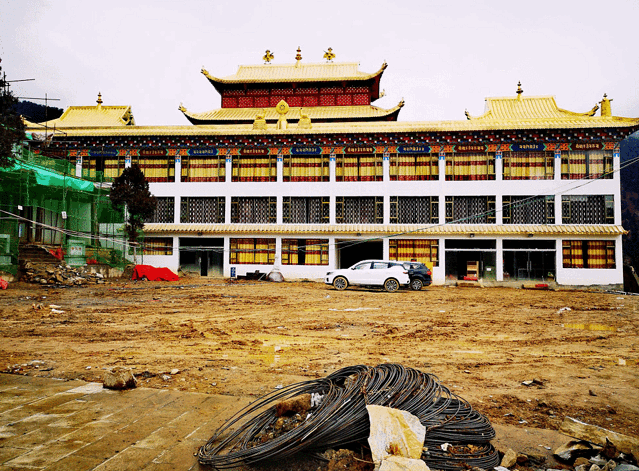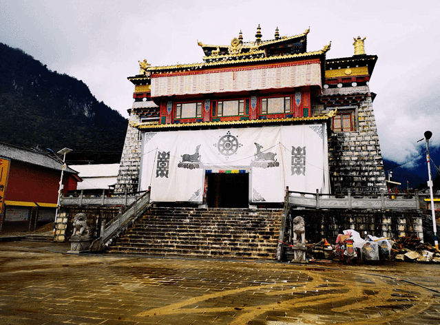 我当时住的叫贡当宾馆,在主街街口,贡当神山脚下,觉得很不错,推荐给大家。下图是在宾馆门口拍的,可以停车。
