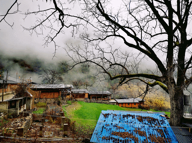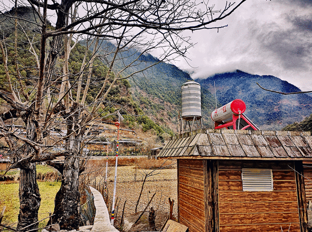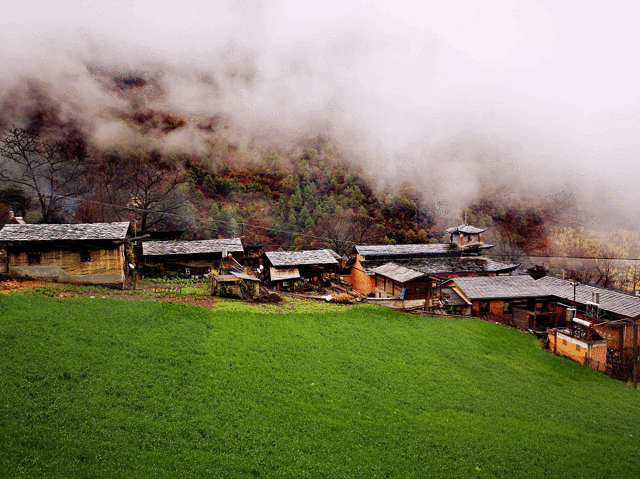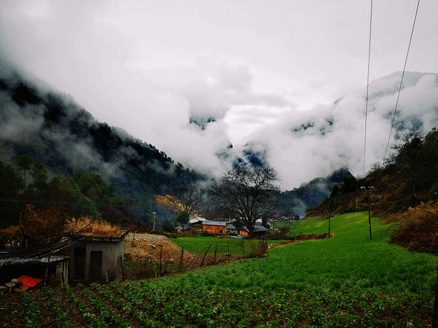 原本一早因为阴雨天还有点儿郁闷,担心雾太大看不到怒江第一湾的好风景,结果来到秋那桶又觉得大雾天太加分了,撑把伞顶着蒙蒙细雨在山间小路走着,一排排小木屋错落有致,云中雾里若隐若现,偶尔听到几声鸡鸣狗吠,这是什么人间仙境,太美了。