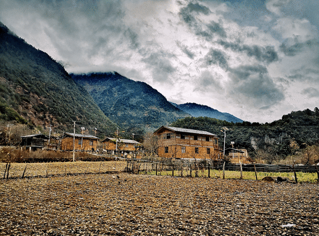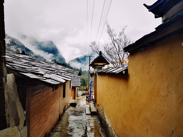 丙中洛雾里村大概是几个景点里知名度最高的,这个村子也建在山脚下,地势相对秋那桶比较和缓,而且它是沿江而建,进出村子要么走古老的茶马古道,要么走一座人马吊桥。汽车是没法开进村里的,所以论交通它没秋那桶方便,走茶马古道进村的体验又让它在诸多村子里与众不同。