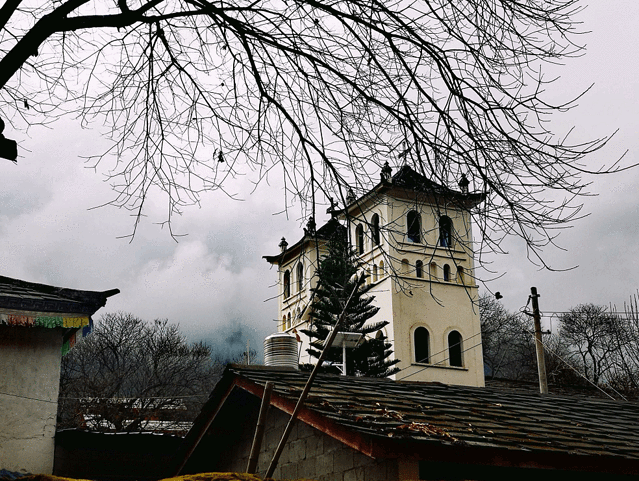 过了石门关,没多久就到重丁村,重丁村的风貌已经不完全是传统民居了,有不少砖瓦房,所以来这儿仅仅是为了看一座教堂和一座寺庙。