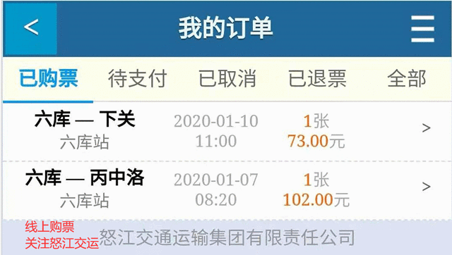 上面说到地貌,了解怒江地势险要,自然交通不便,想去丙中洛,往返交通时间至少要4天,首先到达怒江州首府六库,我去时候还算幸运六库-丙中洛公路刚刚修好,坐大巴车早上八点二十出发,下午三四点可以到达丙中洛,票价102。返程的票线上不卖,需要在丙中洛汽车站买,或者留下司机联系方式,直接跟司机买票。