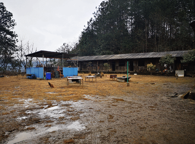 走完颠簸的最后一公里,车来到一个泥泞的大院儿停车场,里面还养了一大群鸡。司机师傅带路穿过一条小路终于来到观景台。