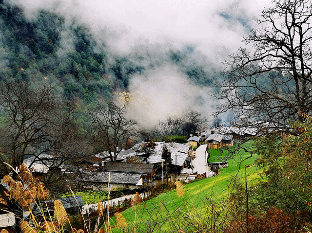 离开滇藏界开车十几分钟,就会来到丙中洛秋那桶村,这是云南省在怒江大峡谷北端的最后一个村子,村里住的是怒族和傈僳族,人称&人神共居&之地,村子海拔1750米,在半山腰的一块相对和缓的坡地上,进村也是要走一段盘山路。