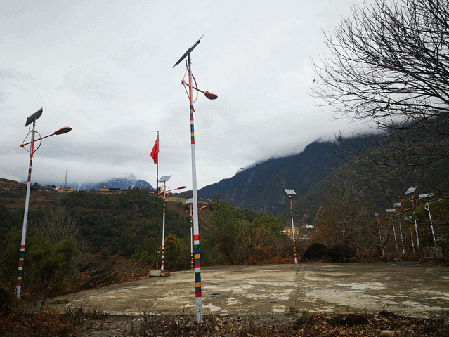走几分钟会看到一个满是太阳能路灯的小广场,这就是桃花岛村委会的所在地。