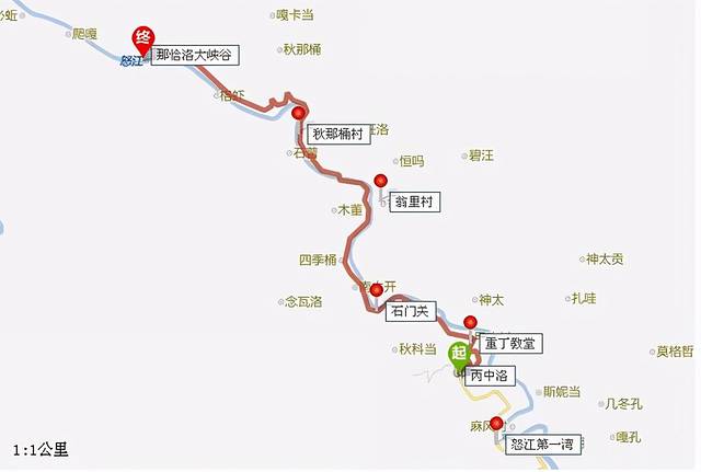 看上图每个景点相隔几公里,全程大约20公里,如果要徒步可以选择在秋那桶住一晚,第二天返程。
