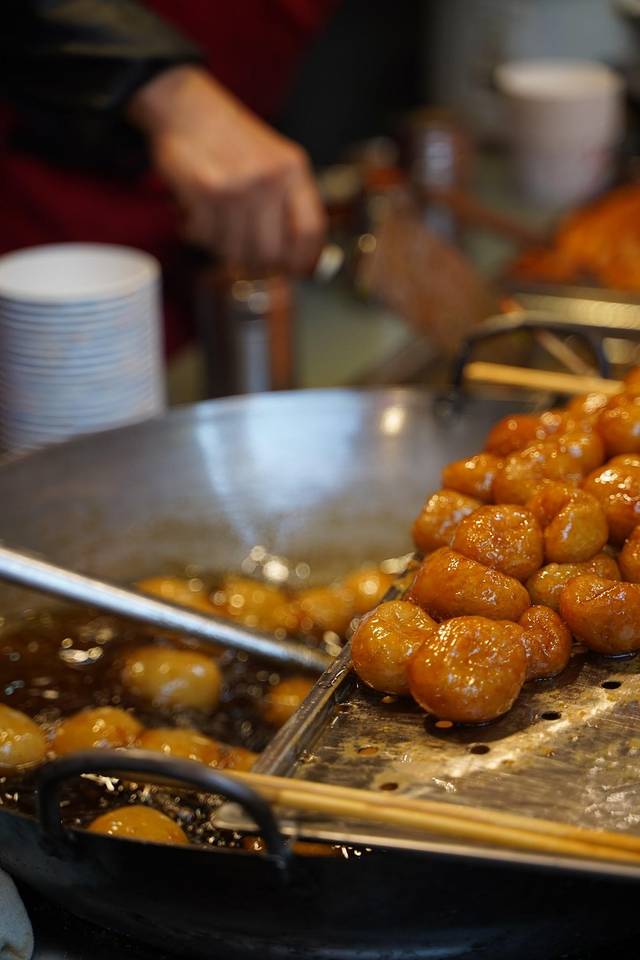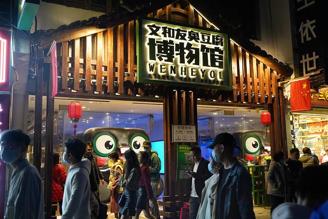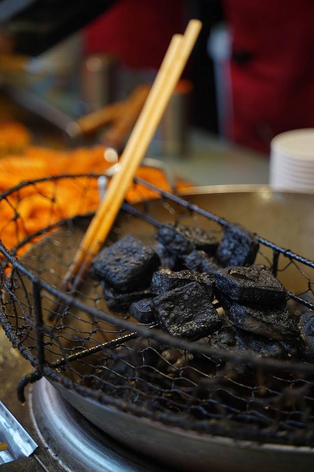 必吃臭豆腐,臭豆腐是现点现炸的,一下油锅就滋啦作响,散发着一股难以言语的味道。起锅趁热吃,撒上酱汁、辣椒、萝卜干和香菜即可享用!臭豆腐闻着不算臭,但吃起来很香口,每一块都炸得恰到好处,外面酥脆,内里汁水饱满。