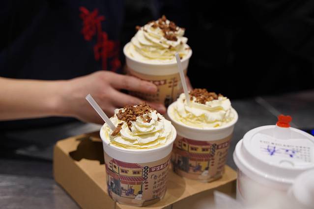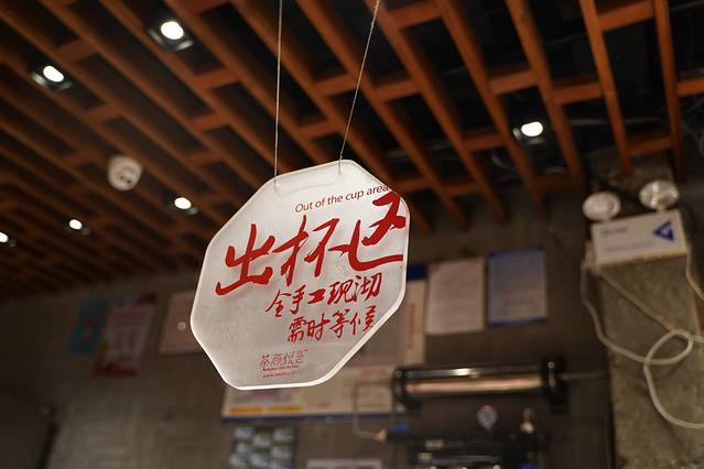 一些较大的门店会提供堂食区域,小的分店就像其他街头饮品店一样,只提供点单和取餐的柜台。不过门面的装饰还是很有特色的,中国元素搭配国际范儿的英文,看着一点也不违和,一眼就能记得住。
