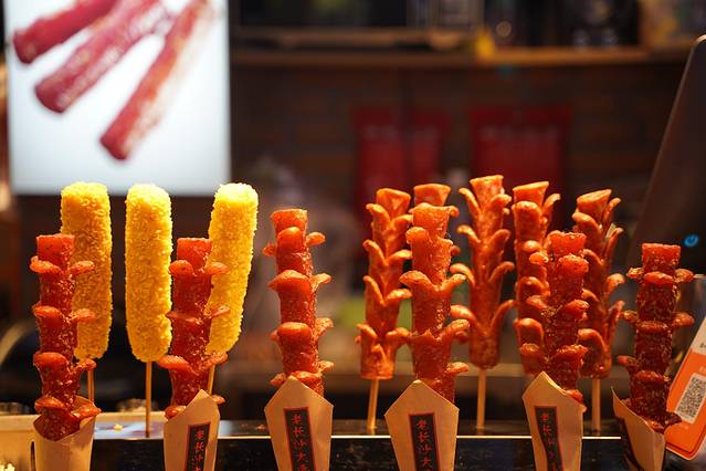 老长沙香肠,超大根的老长沙香肠也是现点现炸,刚炸完撒上辣椒面热腾腾。忍不住大咬一口,外脆里嫩,香口麻辣。