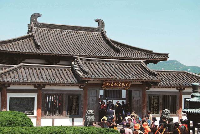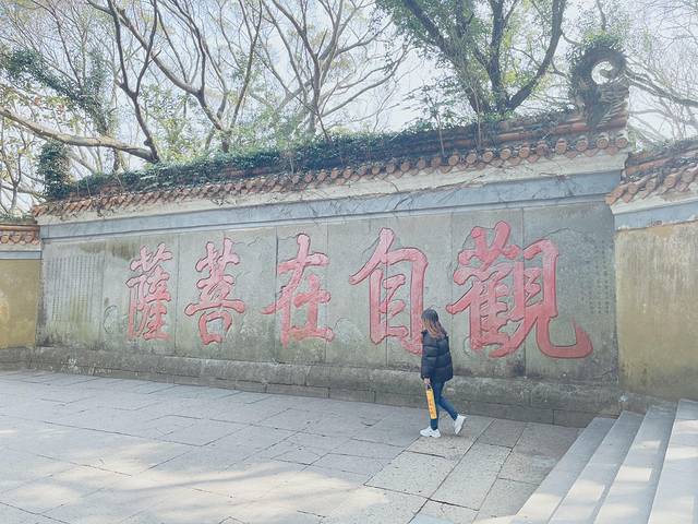 这个景点之前在网上看过,也了解了它的过去,这个名字取得倒是很直白,不肯去日本的观音。传说日本僧人在中国请了一尊观音,千辛万苦到了普陀山的潮音洞附近,哪知这天天空突然狂风骤雨,日本僧人感叹,莫非观音不肯去我们那?佛讲缘,那就留下来,不肯去观音也得此名。听完故事,是不是觉得这个名字取得相当随意,呵呵。不肯去。