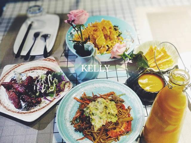 提前订好了桌,主要是怕人多,但是由于我们到的时间比较晚竟被我们包场了,环境超美,绝对满足了我们的少女心。来不及点菜来不及坐下,拍照拍了十几分钟,简直抑制不住内心的欢喜。朋友说她太喜欢这里了。 饭菜的分量都不小,而且味道都很不错,又有颜值又有美味,是约会的绝佳选择。