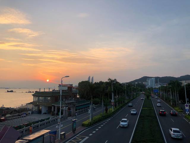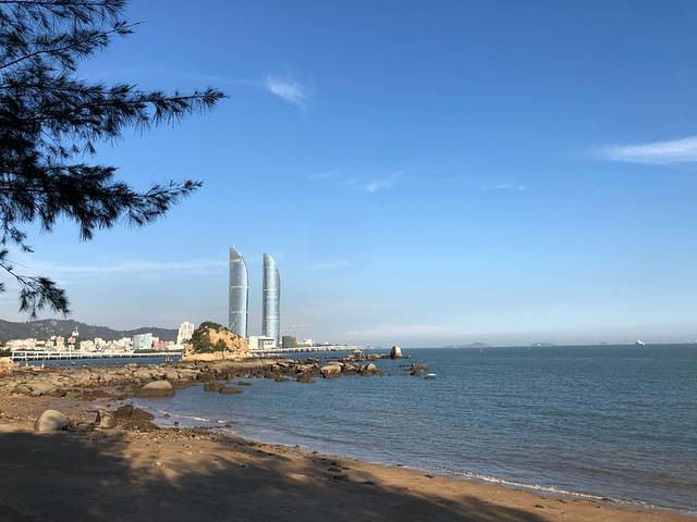 环岛路沿海而建,全程3.1公里,一路上可以看到沙滩、大海、公路。沿途有多个海滩,适合情侣拍照、家人戏水、遛娃游玩。是厦门最热门的海滩。