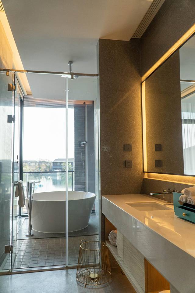 我定的房间就是湖景房,阳台正看湖景,这边酒店还设计了一个浴缸,晚上一边泡澡、一边看欣赏湖中倒影的旖旎灯光,独享一份闲适清幽,真是绝佳的小资生活。