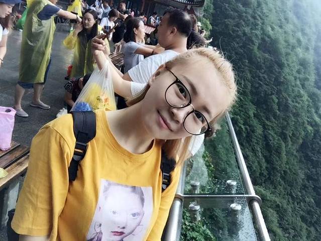 和天门洞合张影,但是我穿的比较休闲,但是为了看到更好的景色,我专门去配了一副眼镜。然后女孩子一定要化妆,或者涂防晒霜,因为山上的紫外线特别强!