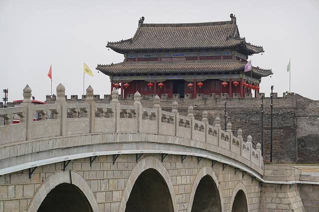 网上介绍商丘古城是世界唯一按照八卦金木水火土建造的城,被评为世界遗产。商丘是明、清时期归德府所在地,所以又称归德府城。1502年黄河决口夺淮入海,现在的商丘古城建于明正德六年(公元1511年),距今已有500多年的历史。现今的古城下面埋藏着自秦汉以来的几个朝代的城池。
