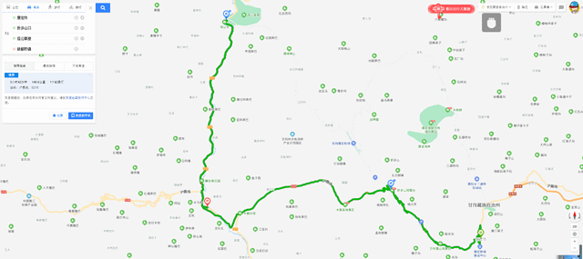 康定-折多山-塔公草原-新都桥,全程148.8公里,驾车3小时42分