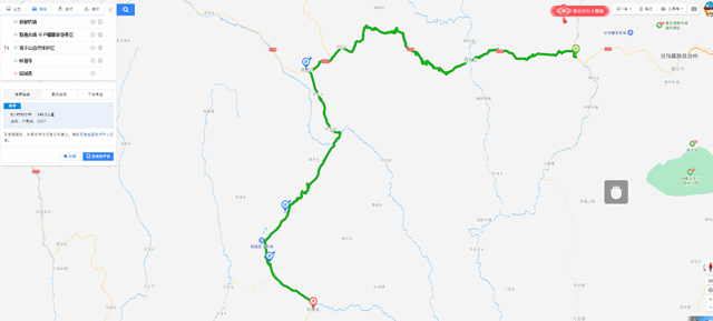 新都桥-天路十八弯-千户藏寨-海子山-蚌普寺-稻城,全程348.3公里,驾车6小时53分
