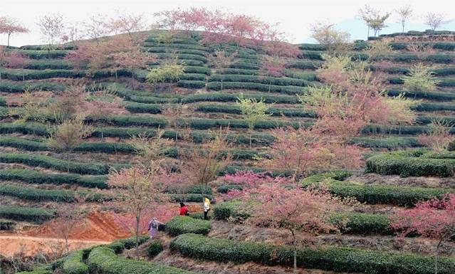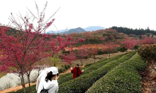 如今,忠信镇桃园村茶园里的樱花已陆续开放,许多游客慕名前来探寻最美的春色。