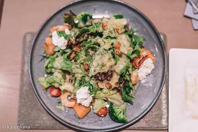 本来计划只点一份网红松饼当作下午茶,但恰逢午餐时间,干脆就在这里解决午饭。跟妈妈两个人点了一份季节限定的网红松饼、一份蛋饼外加一大份 沙拉 ,食量正合适。