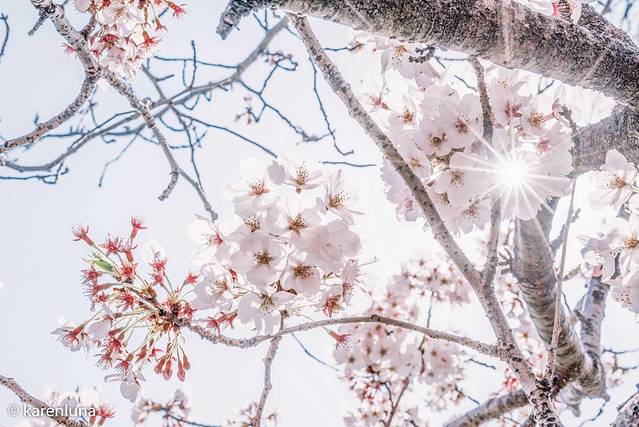 不过这里的关门时间略早,即使根据季节的变化闭园时间略有不同,但大部分时间都是4点。午后时分就会觉得园区里的游客越来越少,景色也渐渐变得空旷起来,而此时对我来说正是拍照的绝佳时间。找一棵枝头满开的樱花树坐下,一人尽享整片粉色盛景,夕阳余晖撒向面庞,此时宁静而富有诗意的烂漫,才是赏樱的最高境界吧。