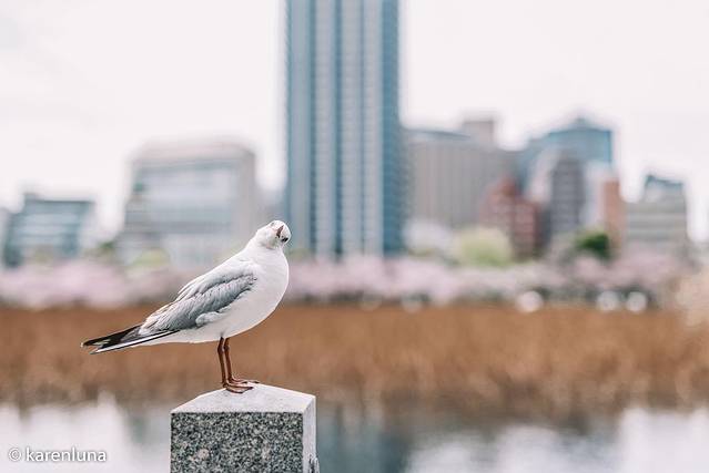 不过相比来说,我更推荐清晨前往。要知道偌大的桥头美景只有我一人独享,这样的僻静悠闲在这樱花季的 东京 是有多么难得。即使有些过往的行人,也只是骑着自行车的上班族匆匆停下脚步咔嚓几张,或者牵着柴犬的附近居民在树下悠闲遛弯。
