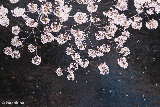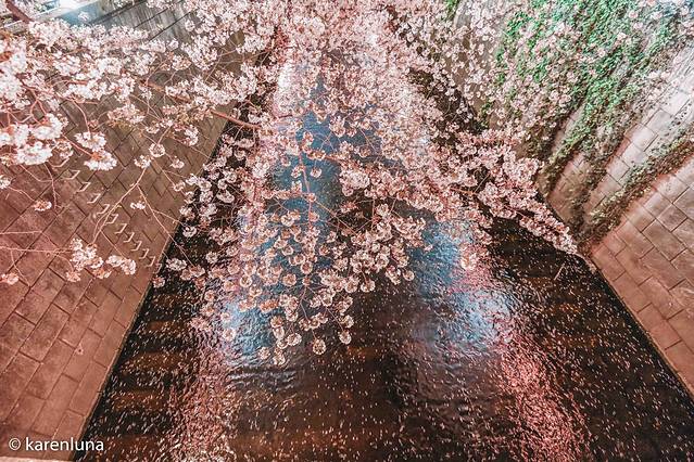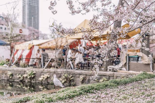 与目黑川相似的是,这里同样是河道两侧种植了超美的樱花树,待到樱花满开时,枝头延伸到水面上,当一阵风吹过,淡粉色的花瓣雨散落到河水中慢慢流淌着,那个景色真心美到窒息。