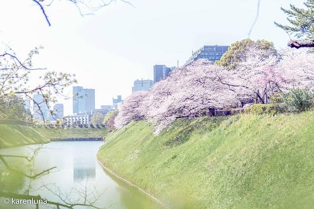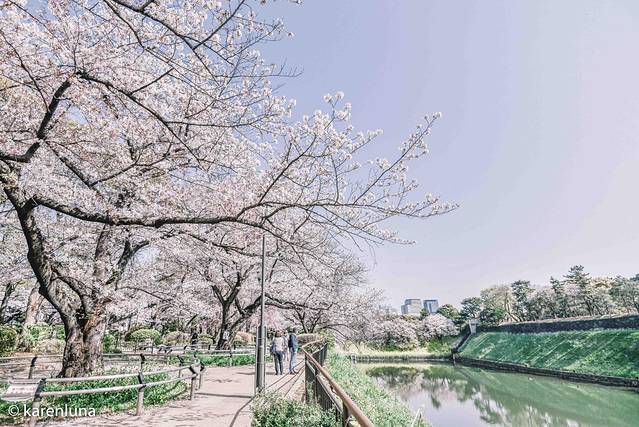 因为北之丸的名声过大。所以游客也是更多,相反,让这附近的千鸟渊公园安静了许多。沿河大道和堤坝上种植了170棵樱花树的千鸟渊公园,满开的时候形成了一条粉色隧道,走在其中真是有种说不出的浪漫。虽然我去的时候樱花已经开始飘落,树上也长出了很多绿芽,还是可以想想到满开的时候是由多么美丽。当然最最重要的是这里的游客居然这么少,人像真是可以想怎么拍就怎么拍。