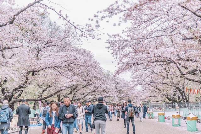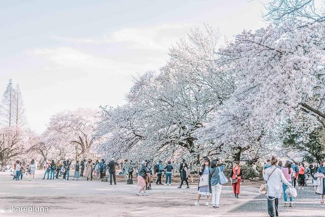 上野公园作为 日本 第一座公园,历史文化还是很深厚的。因园区内种植着1200多棵染井吉野樱,樱花满开时节,每到风过之处,那落樱雨下的壮观还是非常浪漫的,所以每年这里都会举办隆重的"樱花祭",也是 东京 本地人最钟爱的赏樱胜地之一。