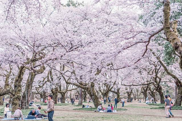 如果说目黑川在 东京 赏樱胜地中排名第一,那么新宿御苑便是第二。这个坐落于高楼林立中的 日本 皇家园林横跨新宿区和涩谷区两大商业区,各种日式、英式、法式的庭院风格融入其中,大片的草坪、树木、池塘散落在园林各处,让人走进其中就像是来到了一大片城市氧吧。而在樱花季,这里更是游客纷至沓来的赏樱胜地,每到3月底4月初,园区内的70多种共1500多棵的樱花树争相开放,那盛况别提多壮观了,走进其中就像是走进了粉色的世界,唯美而又浪漫。