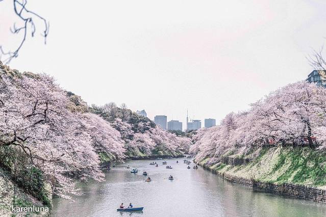 千鸟渊其实是 日本 皇宫的护城河之一,位于北之丸公园外侧,因这里的湖面形似千羽鸟儿振翅欲飞的样子而得名。每到樱花季,这里都会因那堤坝上800株樱花树争相开放的盛况所折服,被世人评选为与新宿御苑、上野公园齐名的 东京 三大赏樱名所之一。而网红的赏樱拍照点就位于千鸟渊中段的船坞中心处。