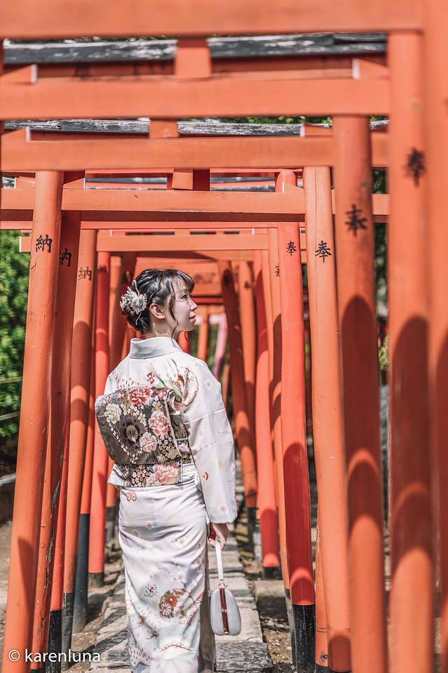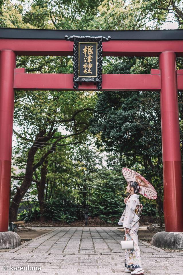 拍摄和服写真,自然要选一些具有 日本 特色的建筑做背景才更有代入感,所以寺庙、日式庭院、鸟居、町屋,这些最具 日本 代表性符号的古建最为合适,而在 东京 就藏着一个有着迷你版 京都 伏见稻荷 大社 千本鸟居的神社:根津神社。