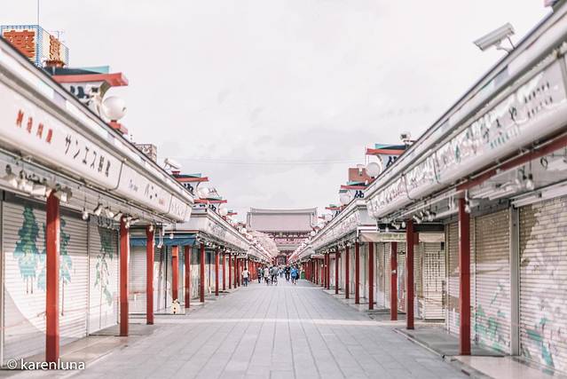 江户和装工房雅店就位于浅草寺北面的居民区里,清晨空无一人的街道与不远处人潮涌动的浅草寺真是形成了鲜明的对比。本来打算变装之后先就近在浅草寺拍几张和服与古建的照片,但当看到川流不息的游客还是决定放弃,直接转战出发前挖掘好久才发现的超级适合拍和服的人少小众旅拍地:根津神社和江户 东京 建筑园。