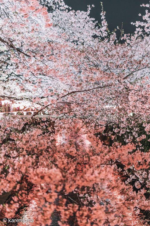很多攻略都把目黑川放在 东京 赏樱胜地的榜首。果然是名不虚传!!!800+株樱花树沿着河道蜿蜒曲折,开满枝头的樱花延伸到河面上,偶有金色的阳光透着淡粉色的花瓣洒在面容上,那唯美的画面别提多梦幻了!而且不管白天还是夜晚,这里都是那么的妖娆绚烂。