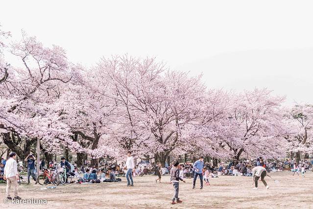 不过即使樱花已经落败,但丝毫不影响当地人对这里的热衷,大家依旧在公园里铺着野餐布吃着美味的小吃,享受着春天带来的朝气,满是一幅热闹喜庆的场景。
