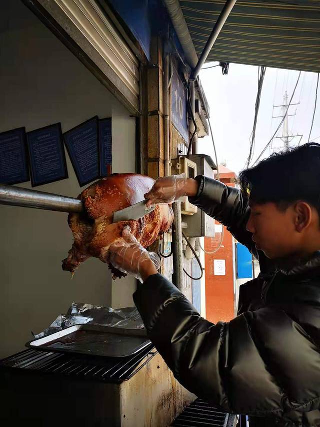 第二天中午就打卡这家乳猪店 老板做生意很诚信 100元一斤拷乳猪 我们两个人要的是最少份30元 都是拿秤称的