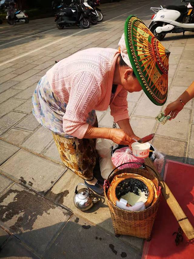 傣族老人叫卖的豆腐脑加糖稀 3元一碗